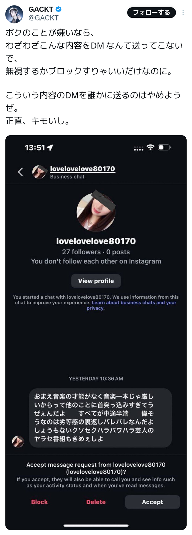 【画像】GACKTさん、誹謗中傷相手を晒して公開処刑 2025年8月28日 最終更新日時 : 2025年8月28日 ぐはっアンテナ 八木勇征の魅力を徹底解剖!彼の成長と影響 【芸能】堺正章が語る 人気ドラマ『西遊記』打ち切りの真相 「天竺に着く前に終わった…」 【LDH】三代目JSB今市隆二メンバー 活動自粛・・・ 【画像】井口裕香さん(37)、まだまだ全然イケるwwwwwwwwwwwwwwwwwwwwwwwwwwwwwwwww ジャングリア沖縄がここまで叩かれている理由がわかったwwwwwwwwww 【苦悩】奥菜恵「自分では清純派とも魔性とも思っていなかった」 【画像】吉岡里帆、理想の男性は「京都の人より九州男児が好き」 【画像】広末涼子さん(45)の近影 【画像】ジャングリア沖縄🌿🦖、ファンもアンチも黙らせてしまう 元坂道?アイドルがデビュー 【画像】GACKTさん、誹謗中傷相手を晒して公開処刑 1: 以下、5ちゃんねるからVIPがお送りします 2025/08/21(木) 11:58:31.157 ID:xbK6TX2Z0 ワロタ 続きを読む 続きを見る 八木勇征の魅力を徹底解剖!彼の成長と影響 【芸能】堺正章が語る 人気ドラマ『西遊記』打ち切りの真相 「天竺に着く前に終わった…」 【LDH】三代目JSB今市隆二メンバー 活動自粛・・・ 【画像】井口裕香さん(37)、まだまだ全然イケるwwwwwwwwwwwwwwwwwwwwwwwwwwwwwwwww ジャングリア沖縄がここまで叩かれている理由がわかったwwwwwwwwww 【苦悩】奥菜恵「自分では清純派とも魔性とも思っていなかった」 【画像】吉岡里帆、理想の男性は「京都の人より九州男児が好き」 【画像】広末涼子さん(45)の近影 関連記事 【芸能】堺正章が語る 人気ドラマ『西遊記』打ち切りの真相 「天竺に着く前に終わった…」 【芸能】堺正章が語る 人気ドラマ『西遊記』打ち切りの真相 「天竺に着く前に終わった…」 【昭和伝説】ドラマ『西遊記』、堺正章が打ち切りの真相を暴露www 【苦悩】奥菜恵「自分では清純派とも魔性とも思っていなかった」