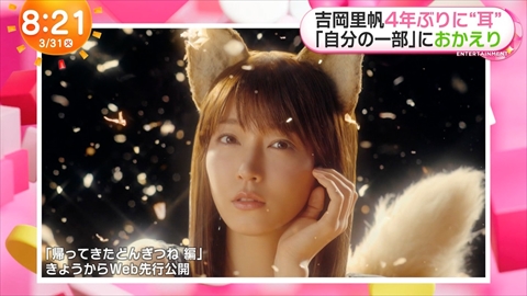 おかえり吉岡里帆のどんぎつね! やっぱりこのキャラは里帆さんでしょ。4年ぶりで嬉しいわ