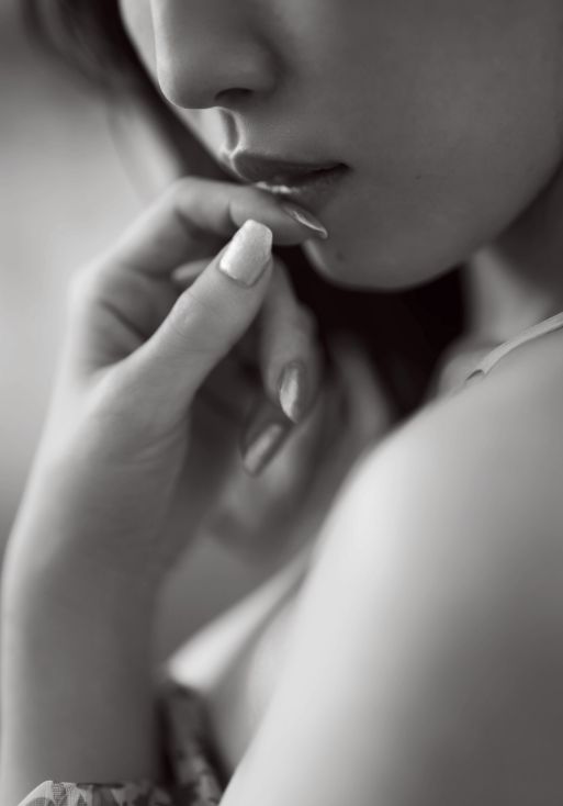 これまでのイメージを一歩超えた大胆な表現ながら、決して下品に流れることなく、譜久村聖特有の透明感と品格を保ちつつ、女性としての成熟したボディラインを美しく描き出している。