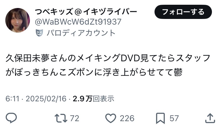 【悲報】ラブライブ声優・久保田未夢の水着写真集、スタッフの勃起が映り込み炎上www