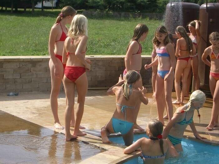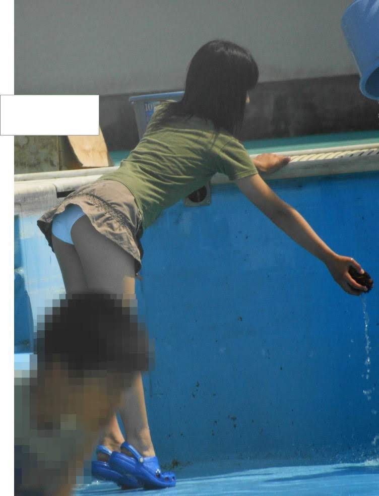 【画像】めっちゃ汚いプールを清掃する女子部員たち🤮