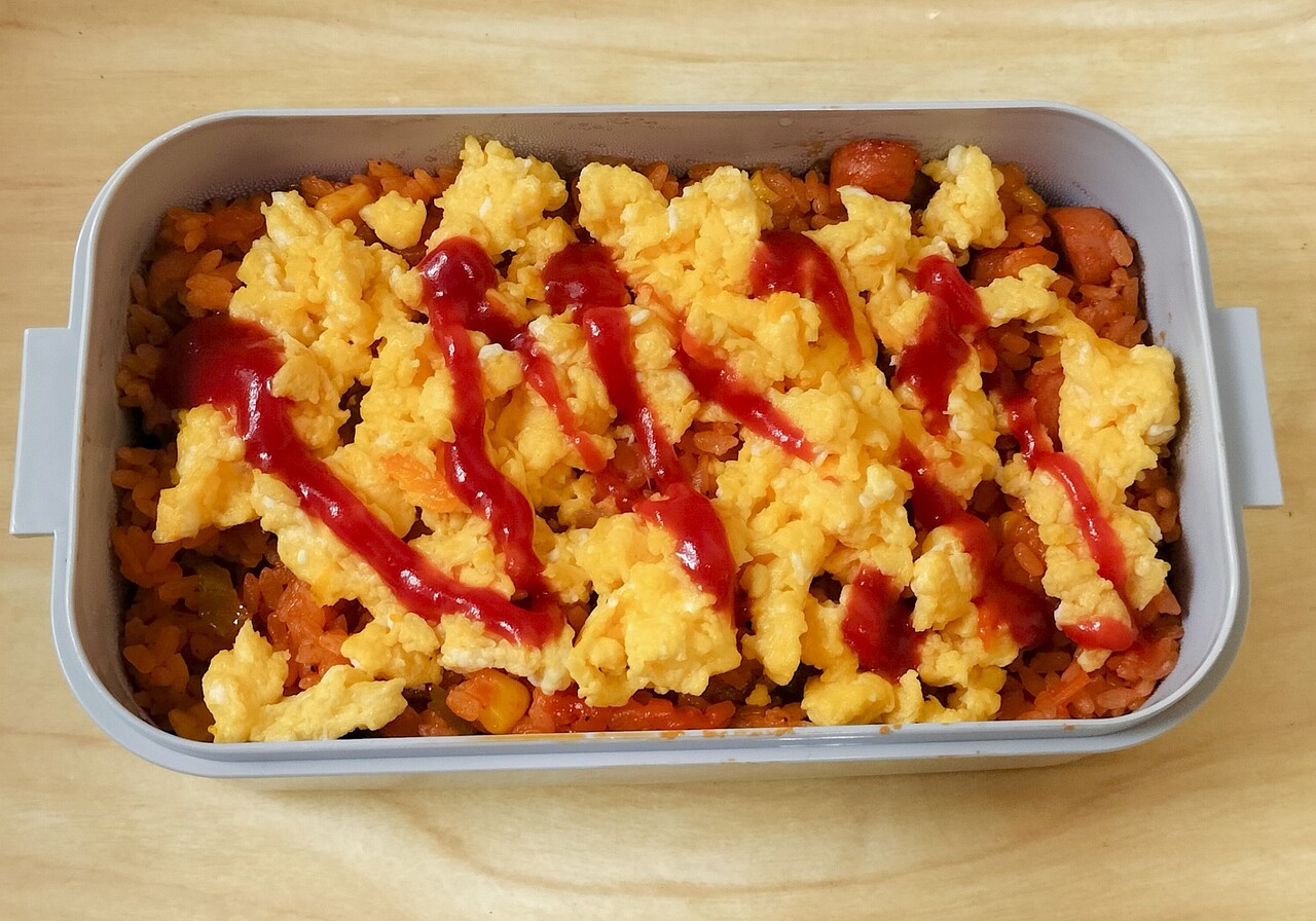 チキンライス(冷凍)を解凍してスクランブルエッグ乗せただけだろ