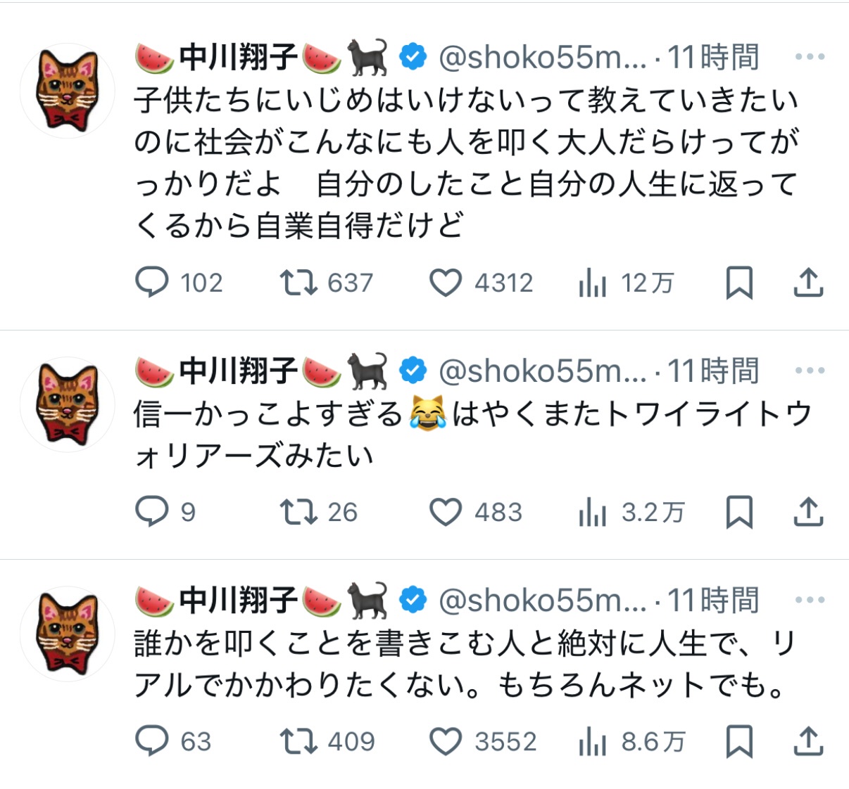 中川翔子が突如SNSで情緒不安定な投稿を連投し、ファンやネット民から心配の声が相次ぐ。「翔子落ち着こう」「SNS休んで」の声も。