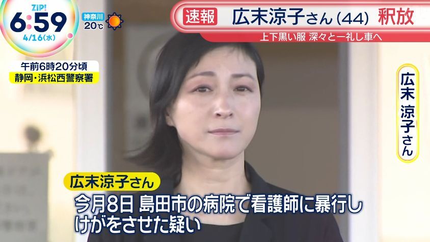 4月8日に傷害の現行犯で逮捕された俳優の広末涼子さんが16日午前5時56分に釈放されました。
