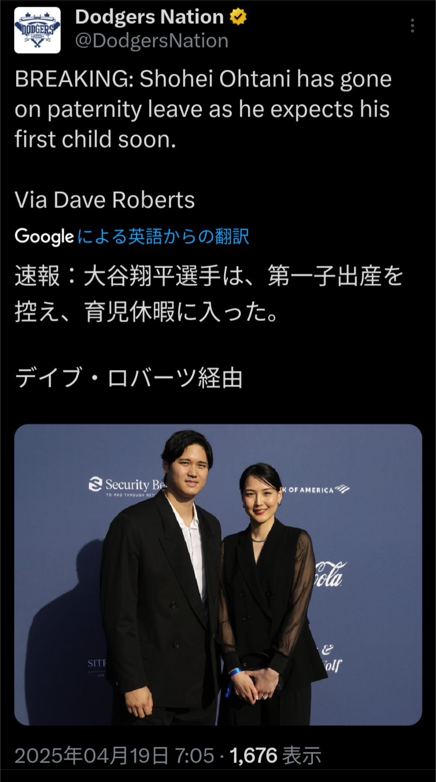 【メジャーリーガー】大谷翔平さん、育児休暇を取得する!?