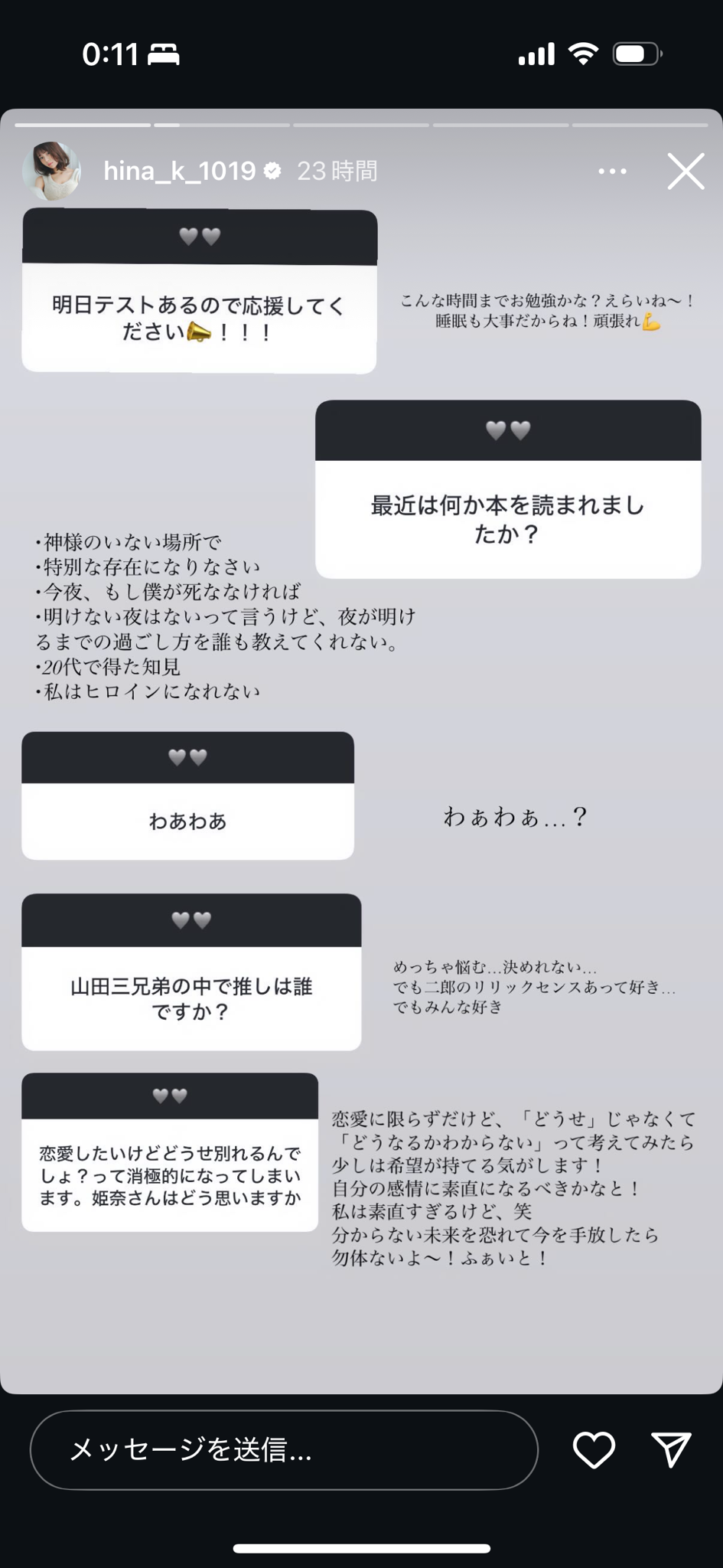 【悲報】菊地姫奈さん、病み投稿連発してしまう