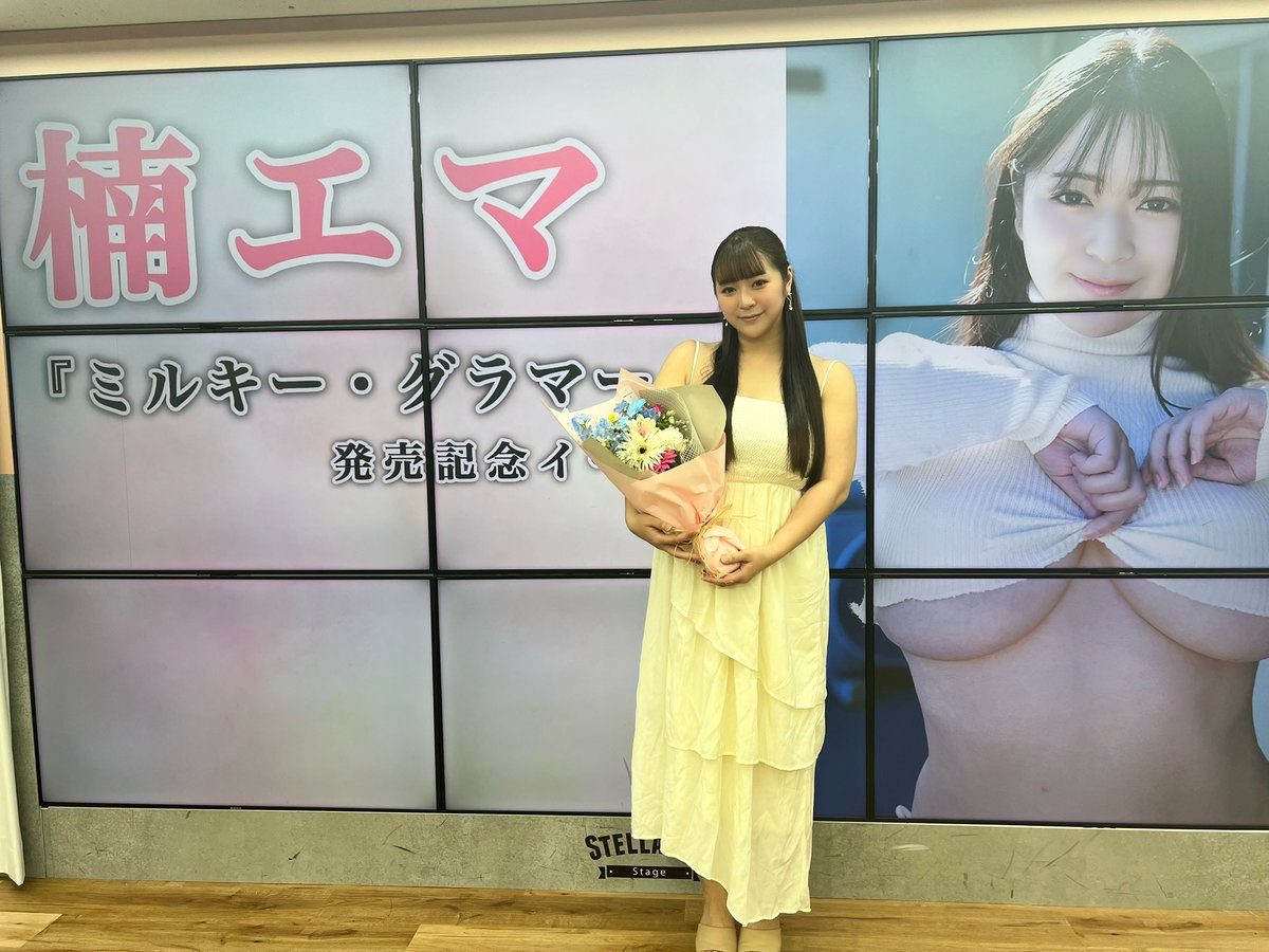 グラビアアイドルのが4月29日、都内で行われたイメージDVD「ミルキー・グラマー」(竹書房)の発売記念イベントに出席。イベント前に囲み取材に応じた。