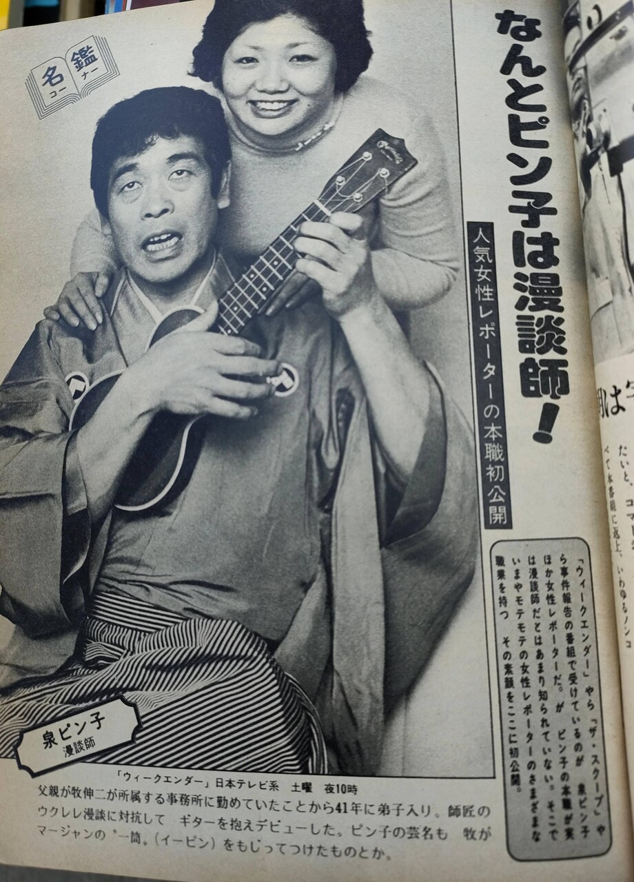 ピン子(いずみ ピンこ、1947年〈昭和22年〉9月11日 - )は、日本の女優、コメディアン、漫談家、歌手、タレント。東京都中央区日本橋生まれ、銀座出身。静岡県熱海市在住。所属は pi企画株式会社。血液型はB型。身長154cm。戸籍名:武本 小夜(たけもと さよ)、旧姓:江口(えぐち)。デビュー直後の芸名は三門…