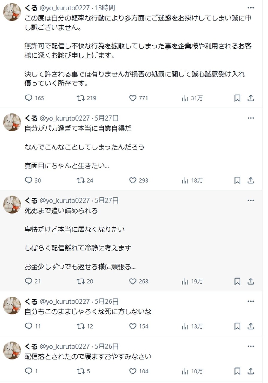 事の経緯と配信当時のスクショ