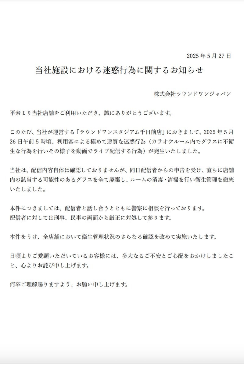 ふわっち配信者がカラオケ店で放尿→飲尿→嘔吐をライブ配信し炎上。顔バレ・特定が進み、ラウワンは法的対応へ。