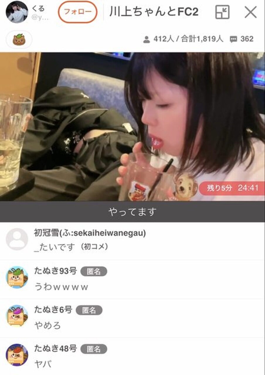 【画像】ふわっち女さん、グラスに放尿→飲尿→嘔吐で大炎上www