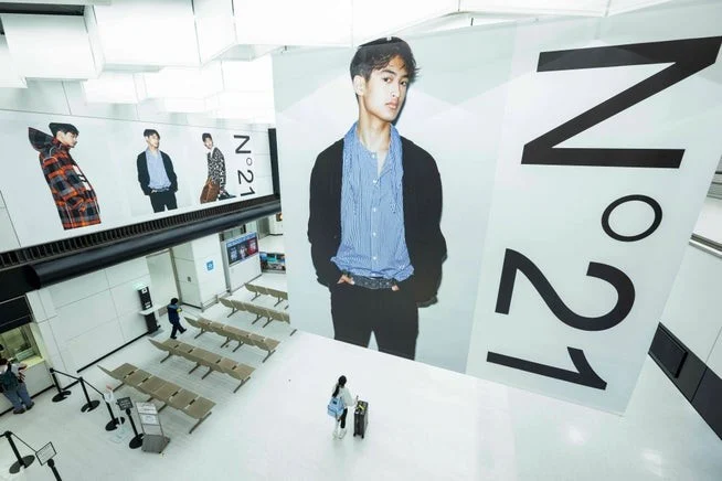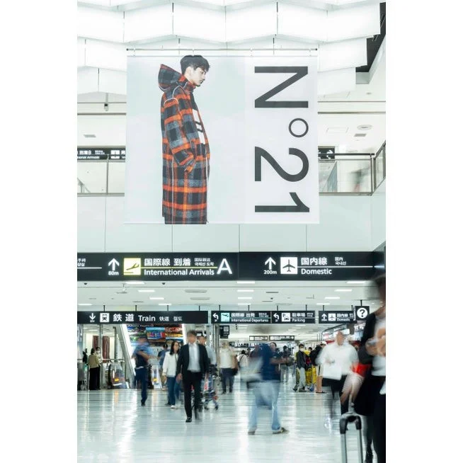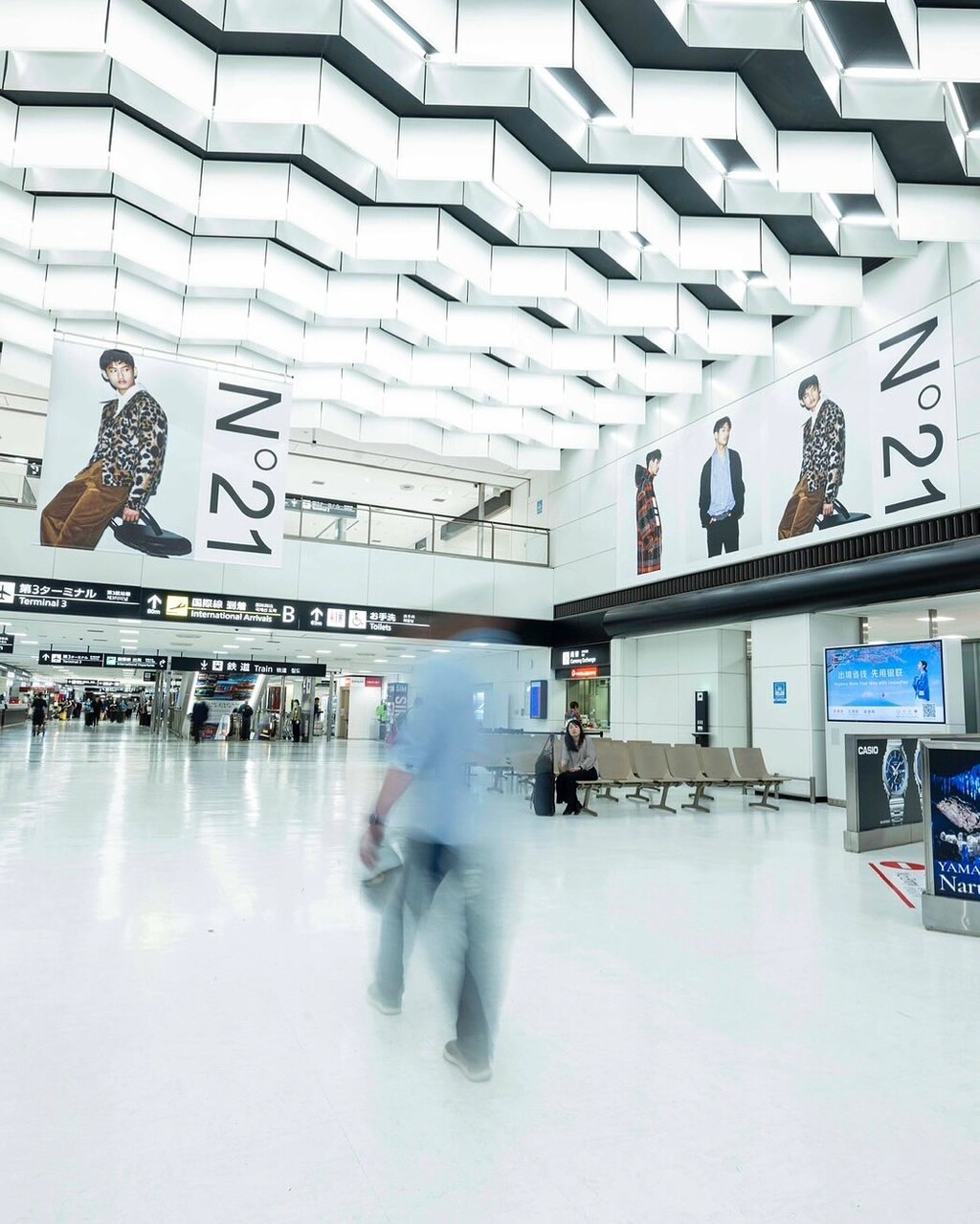 イタリア・ミラノ発のファッションブランド・N21(ヌメロ ヴェントゥーノ)が1日から、注目の新人モデル・道休蓮を起用した広告ビジュアルを成田空港第2ターミナル本館1階到着ロビーにて大型展開している。