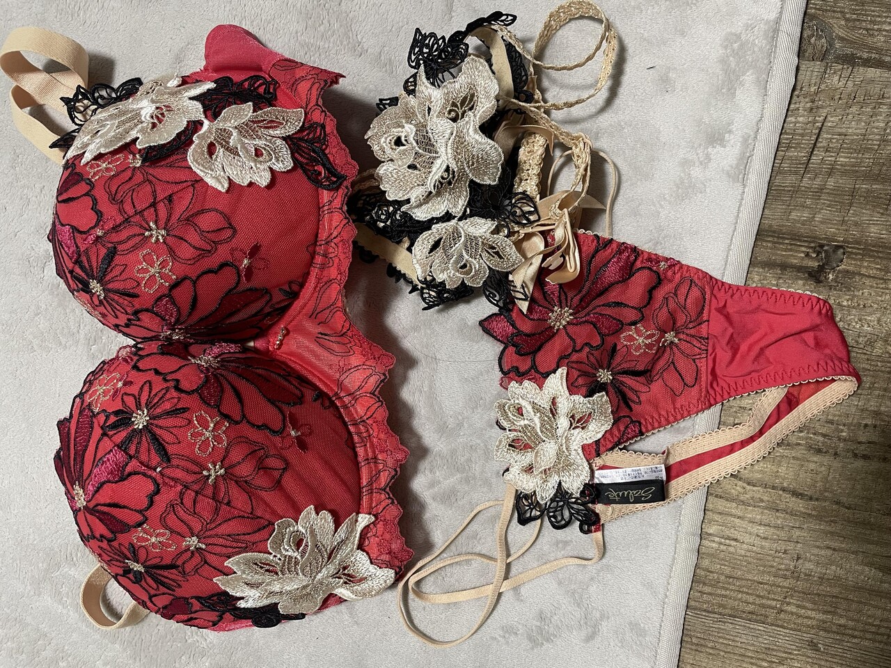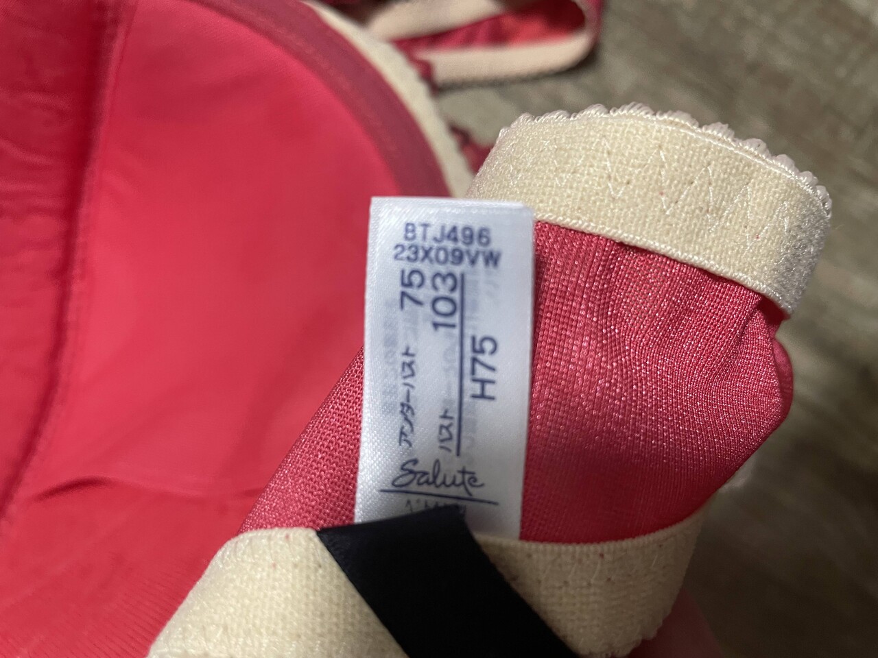 クロッチのとことブラのサイズのタグ見せて