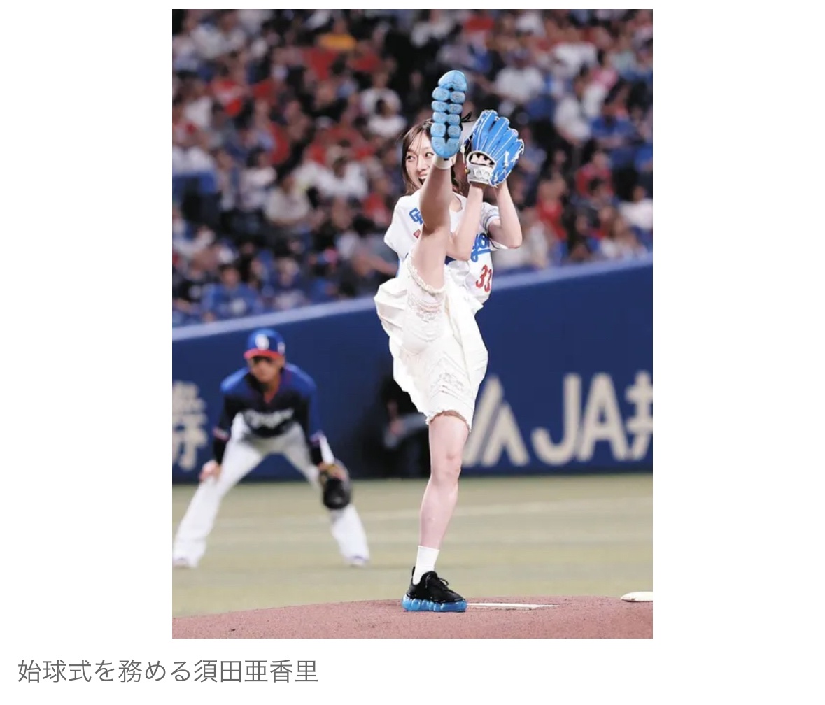 元SKE48・須田亜香里、脚上げノーバン始球式後に『ウインク』ショット公開 「勝利の女神」「ナイスでした」「素晴らしい一球」ファンからねぎらいの声