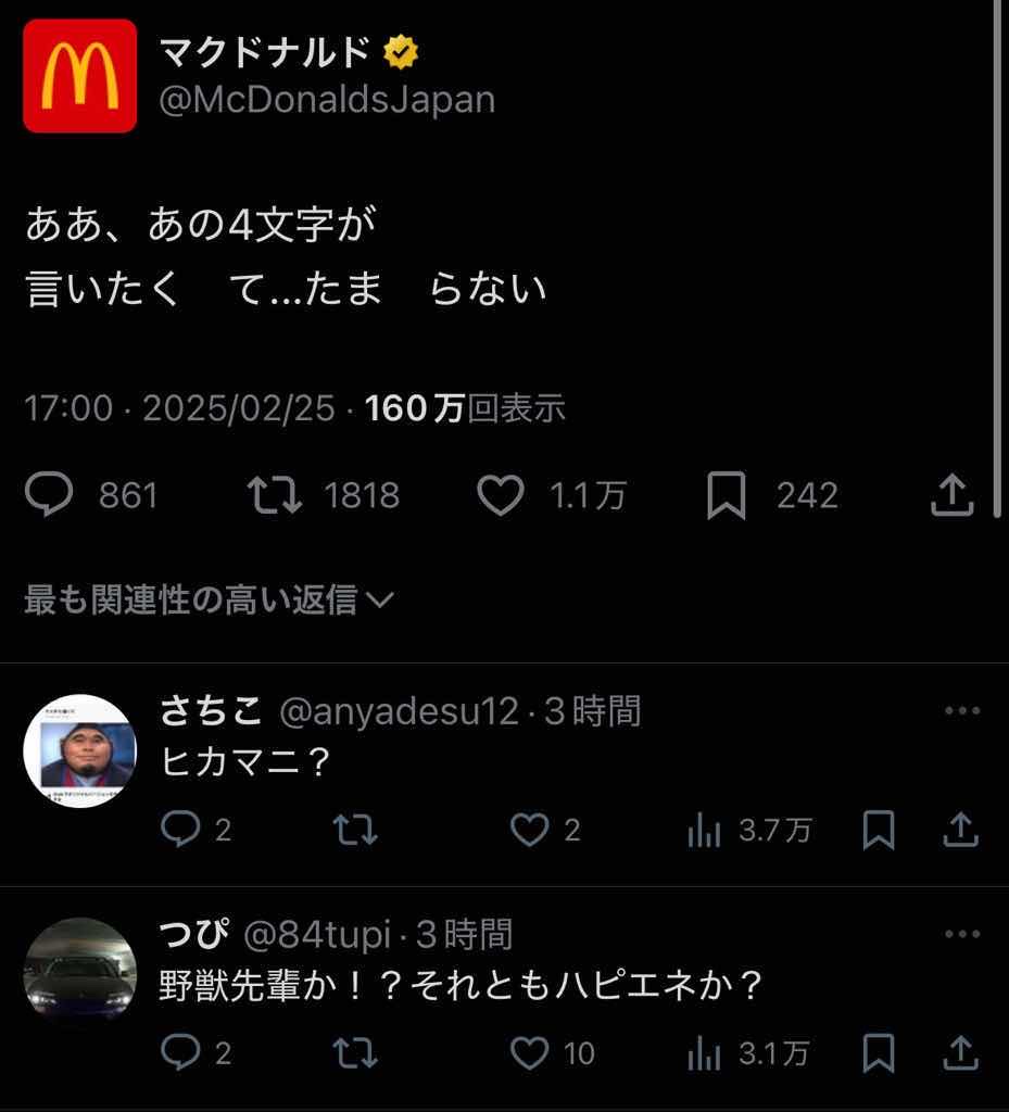 マクドナルド公式「あの『4文字』が言いたくてたまらない」(画像あり)
