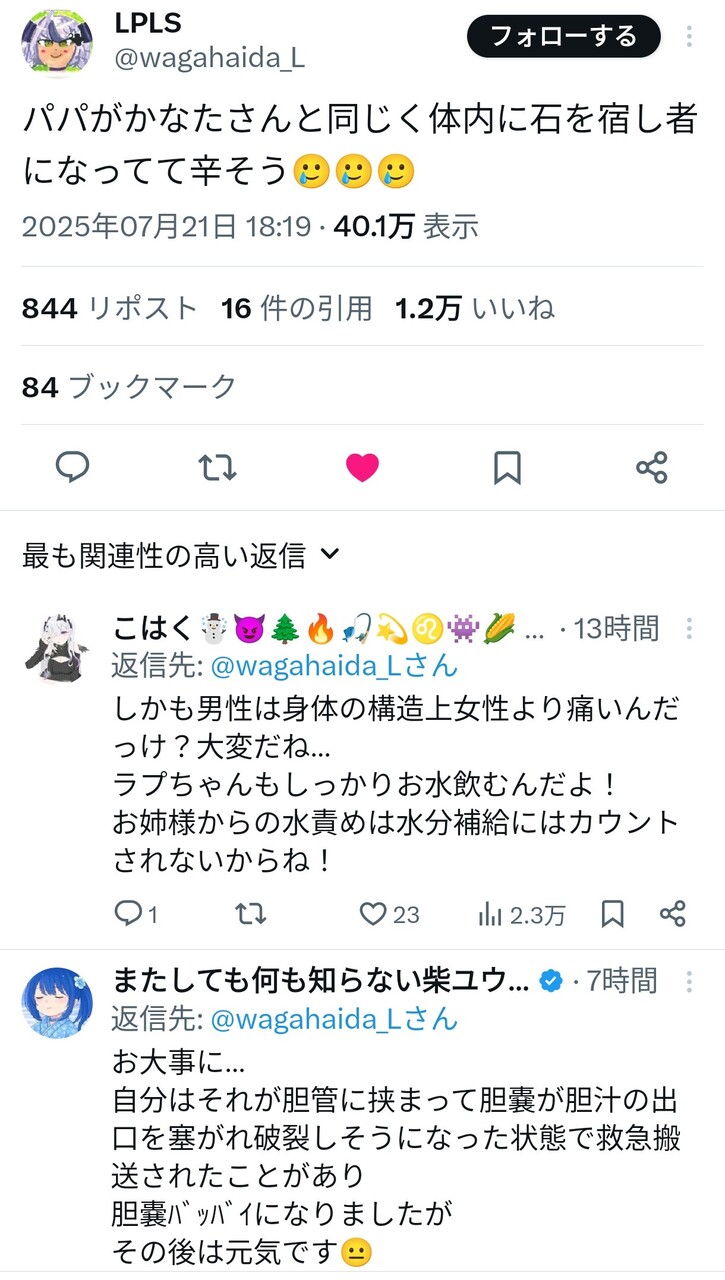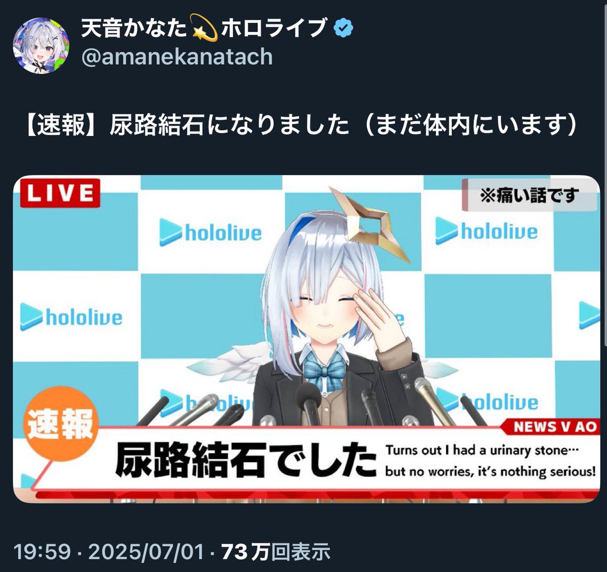 Vtuberのかなたん、実家の父親が尿路結石に…その報告にネットがざわつく。「賢者の石」などネタも飛び交う