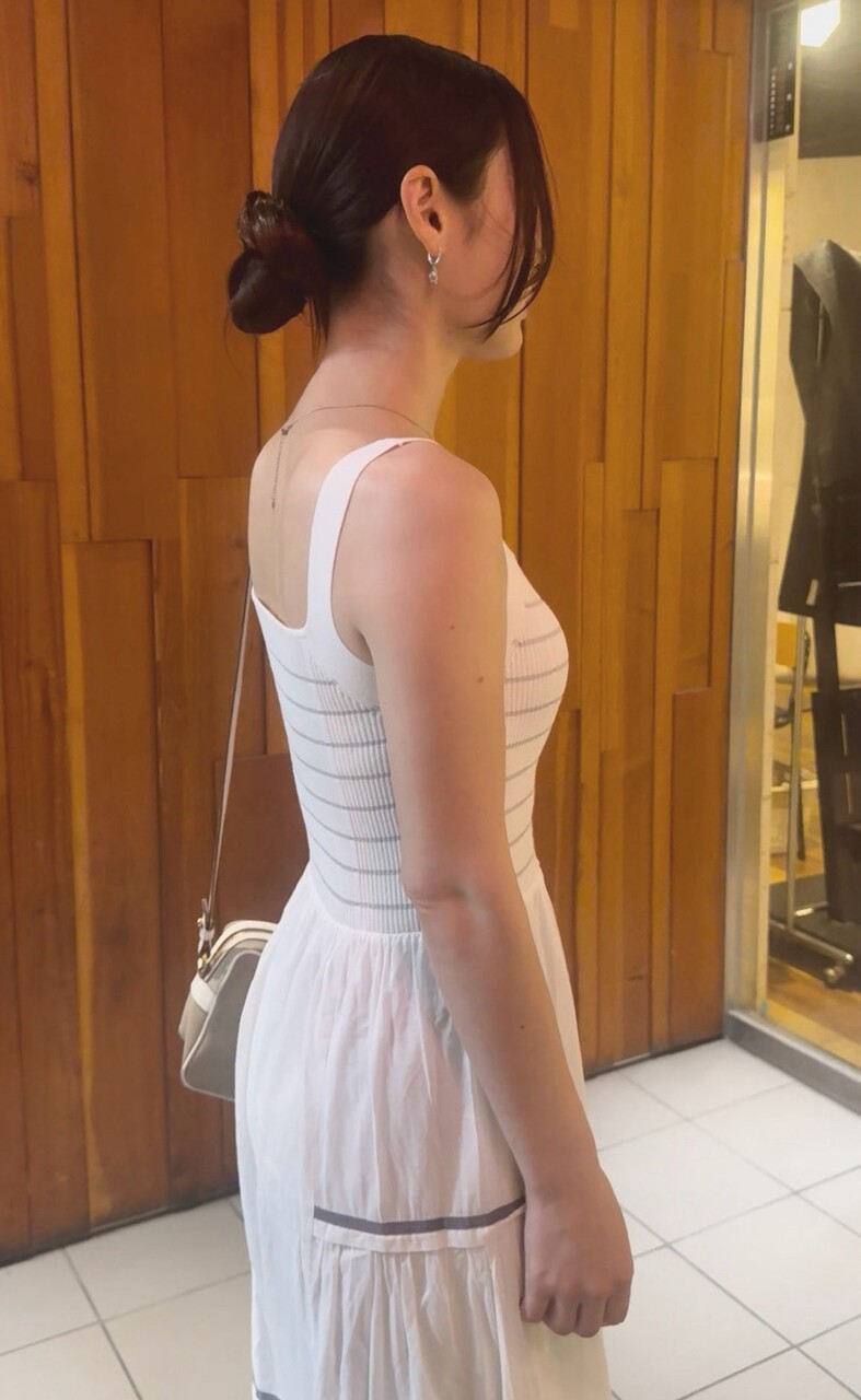 肩丸出しでスカートだからパンツはスースー