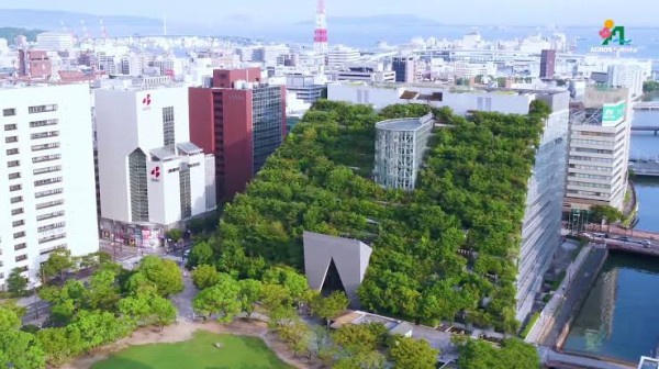 ビルの2階から14階までの天井部分に木が植えられている。いわゆる屋上緑化だ。
