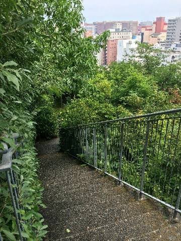 通路にかぶさる枝を綺麗に伐採しとる