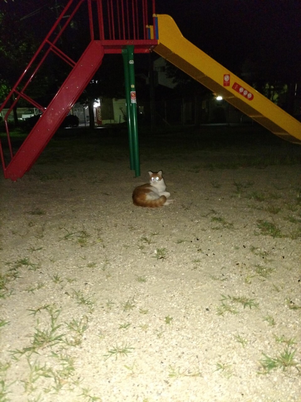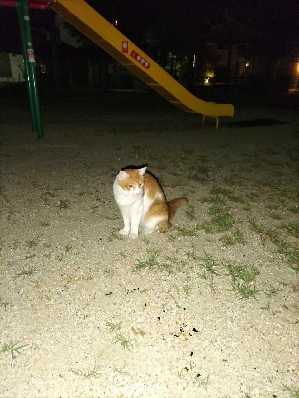 【画像】今深夜に公園来たらめっちゃかわいい猫ちゃんいたんだが