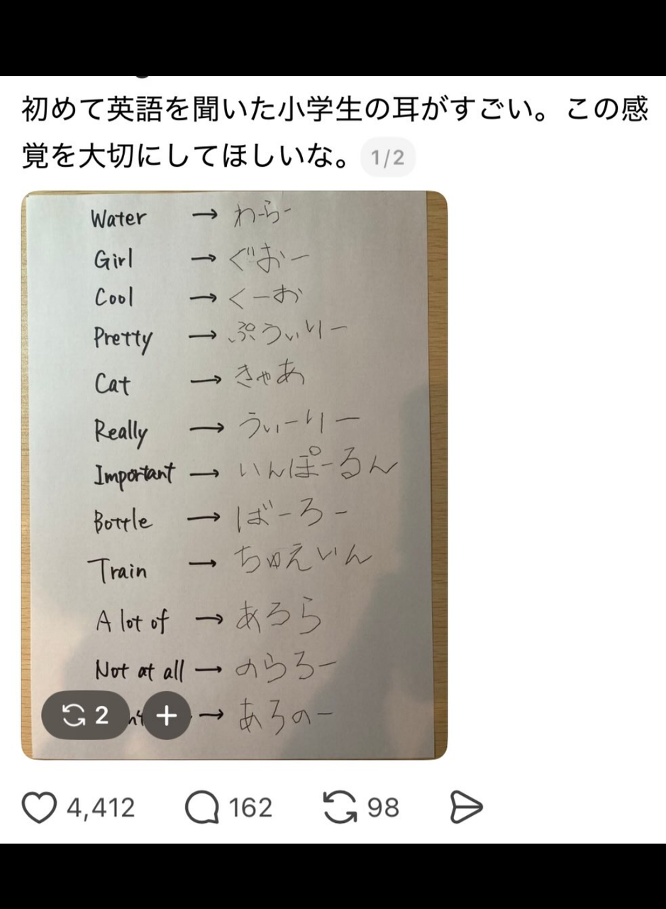 【画像】x「初めて英語を聞いた小学生が凄い!!」←4万いいね