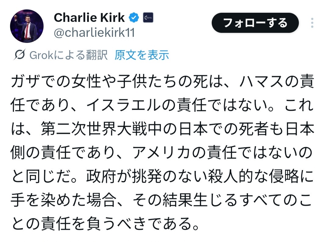 チャーリーカークの動画見たらキリストの教えで世界統一するのが目的言うてる
