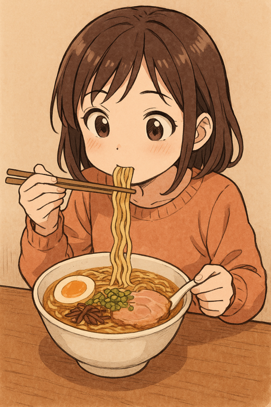 【絵】ラーメン食べてる女の子 → 評価よろしく!✋😳