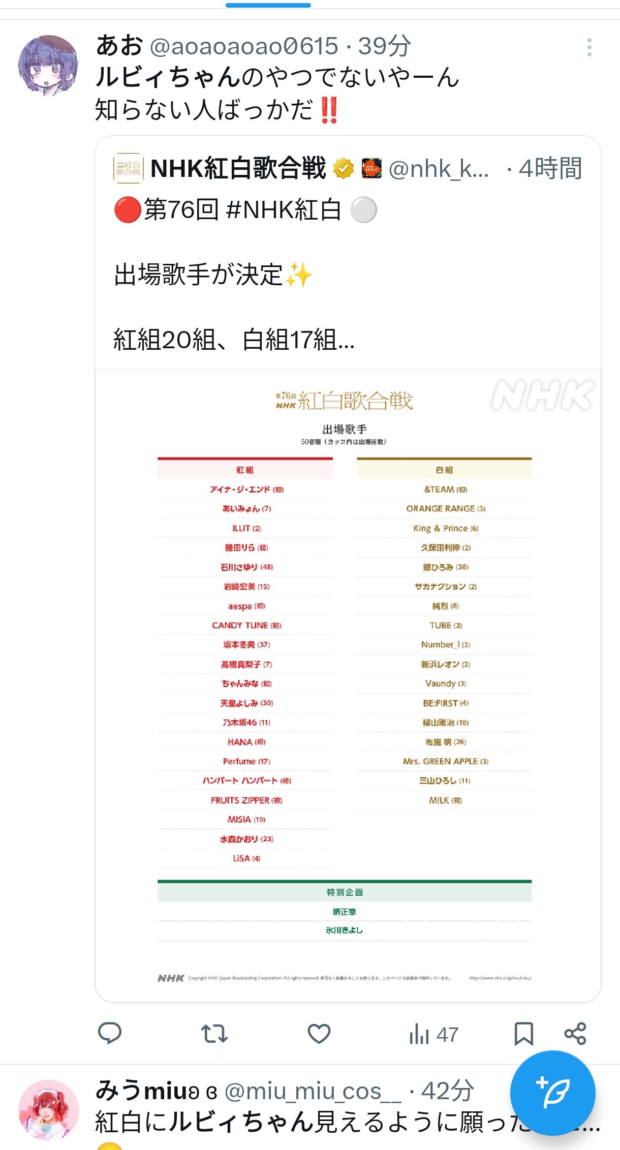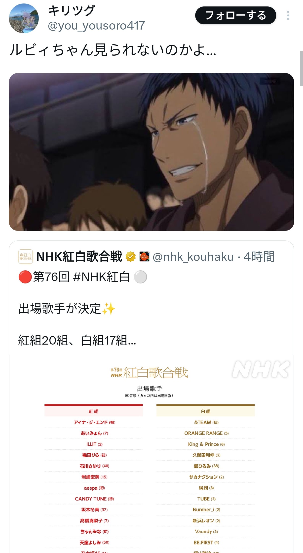 【討論】紅白歌合戦のリスト発表されたけどさ…