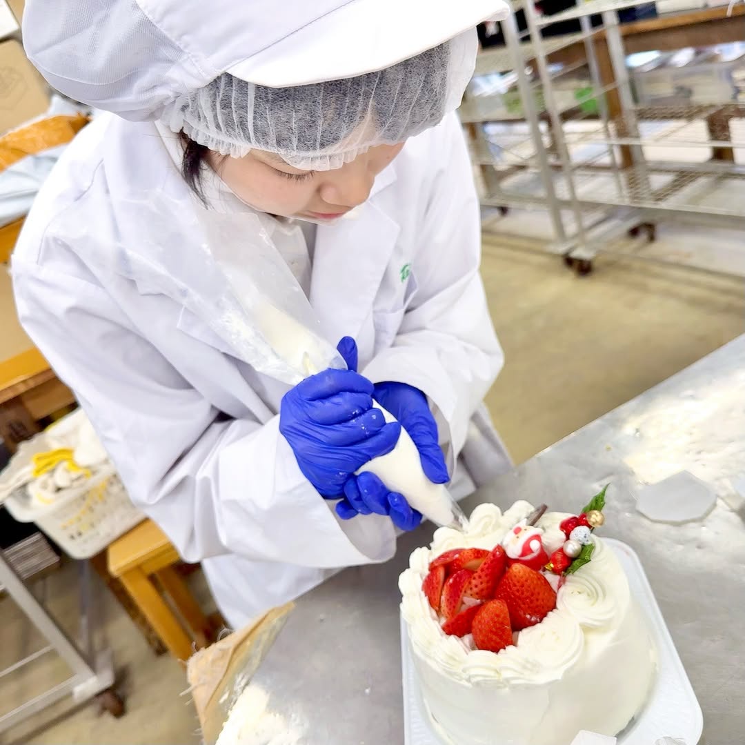 【画像】かわいいJKコックさん、クリスマスケーキを作る