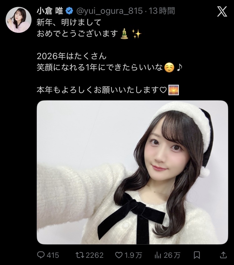 【可愛い!】声優の小倉唯さん、新年のご挨拶yui(*-v・)yui