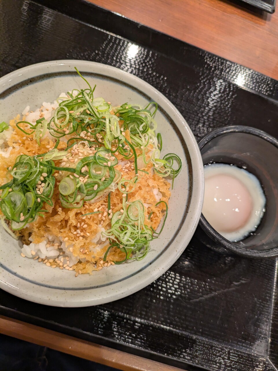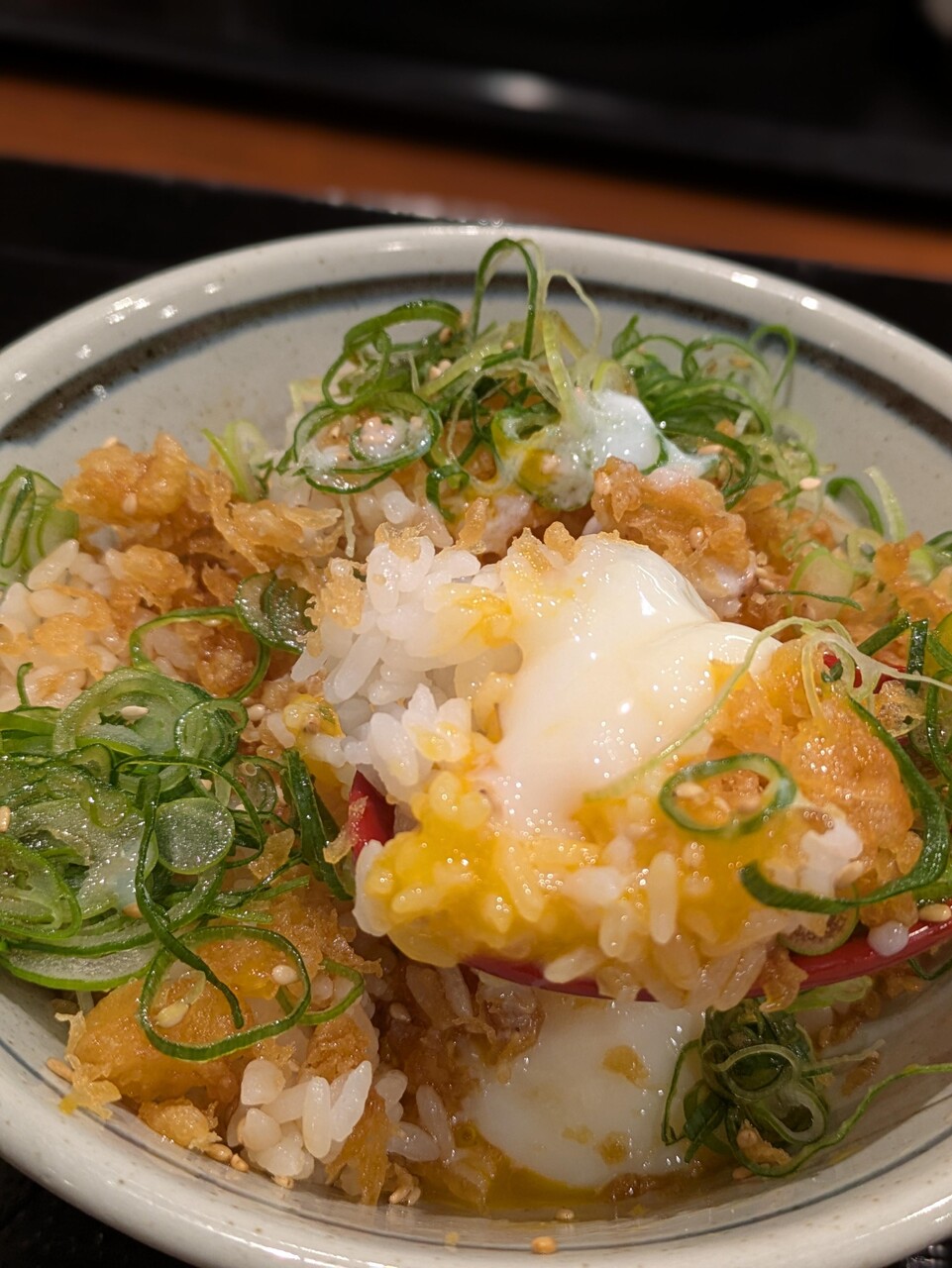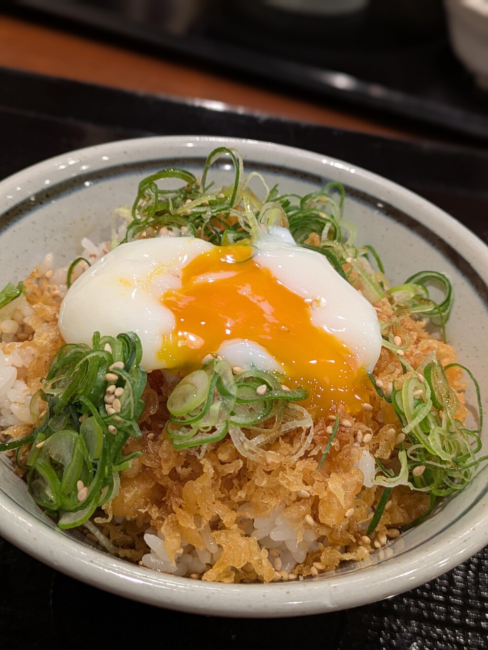 なにこれ?ご飯に無料の天かすとネギ盛って温玉乗せってこと?