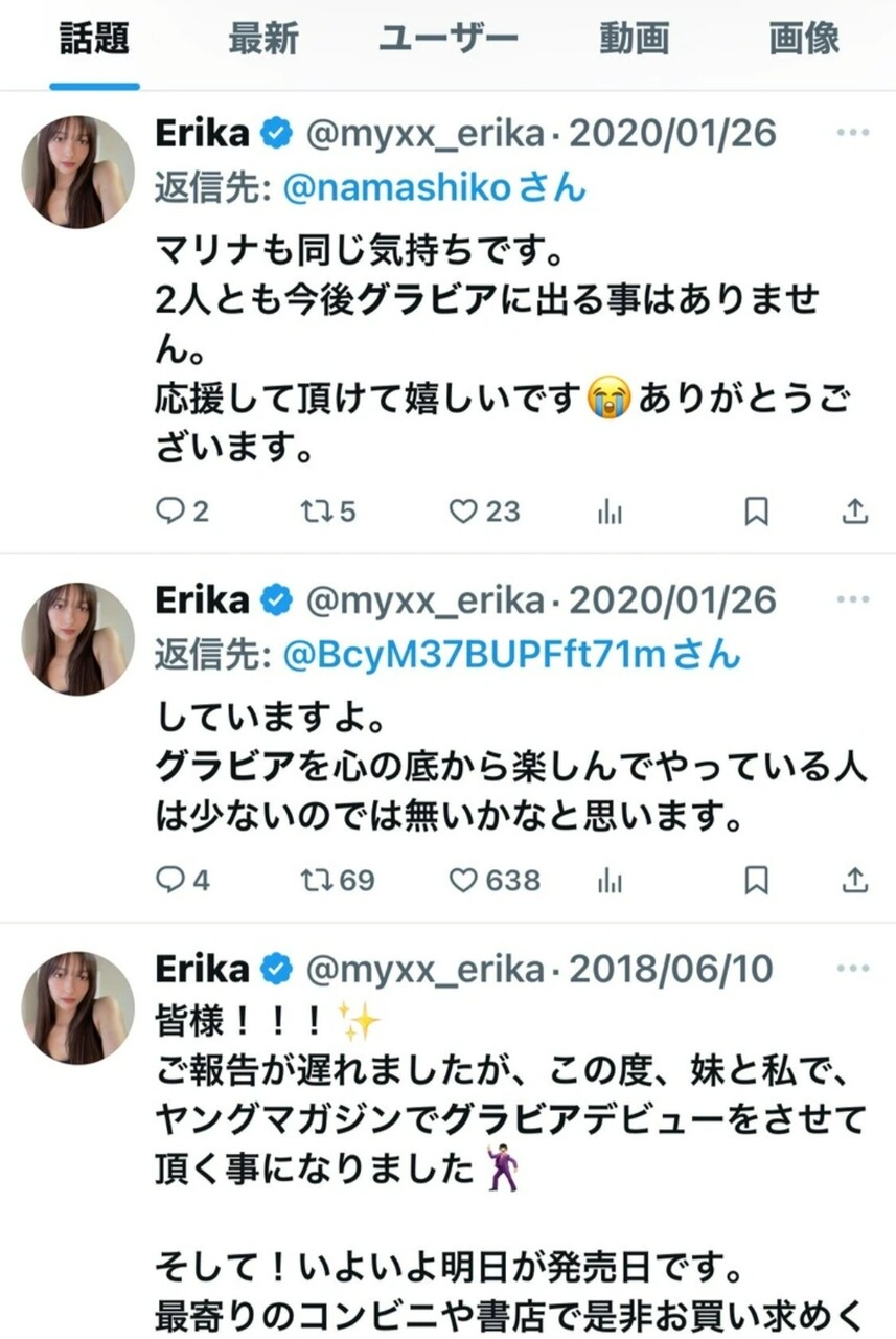 自身が「強くてかっこいい海外女性像というのに憧れていた」と明かしつつ「その後来た世間からの反応を想像出来なかった事にとても後悔しています」と吐露。そして、「なので、私は今後グラビアをする事は一切ありません」と宣言していました。