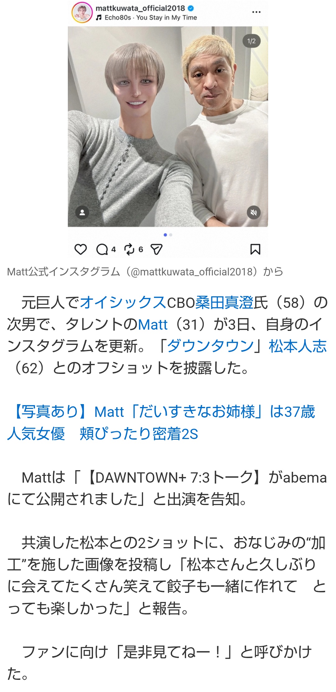 松本人志は天才肌で人とは違った発想をすることが得意だったから、遠い先祖は古代ユダヤ人なんだろうな。