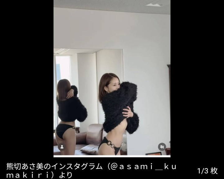 熊切は4日までにインスタグラムで「本の撮影」と書き出し、黒いニットに黒いショーツを合わせた姿でポーズをとる様子をアップ。