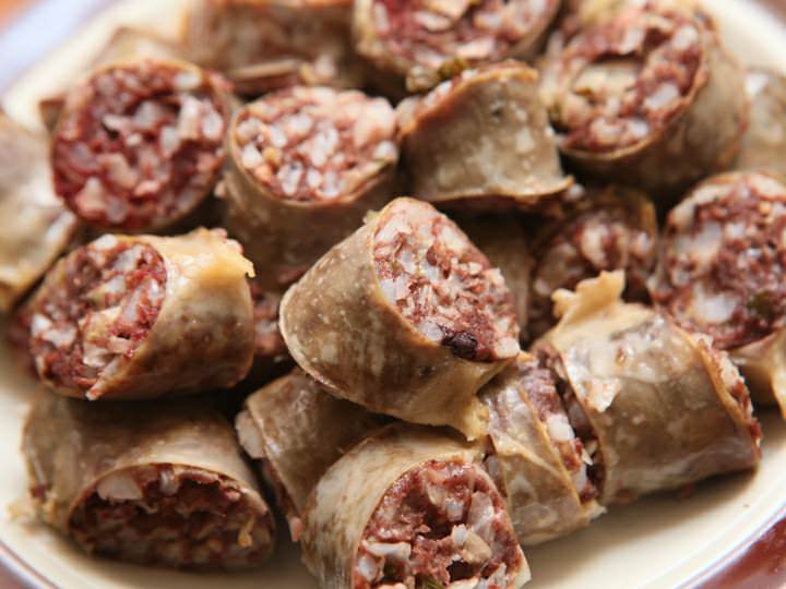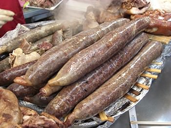 「スンデ」とは、豚の腸の中にもち米や春雨などを詰めて蒸した韓国料理で「韓国式ソーセージ」とも呼ばれています