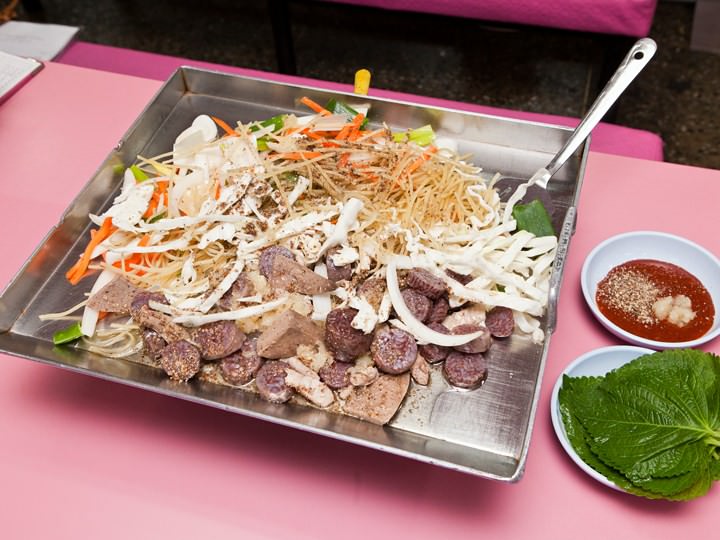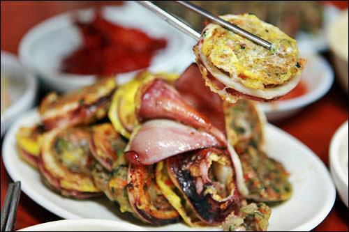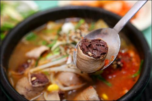 一般的に屋台でトッポッキなどと一緒に注文でき、そのまま塩につけて食べるほか、豚の内臓を一緒に煮込んだスープ料理や、鉄板で炒める料理などもあります