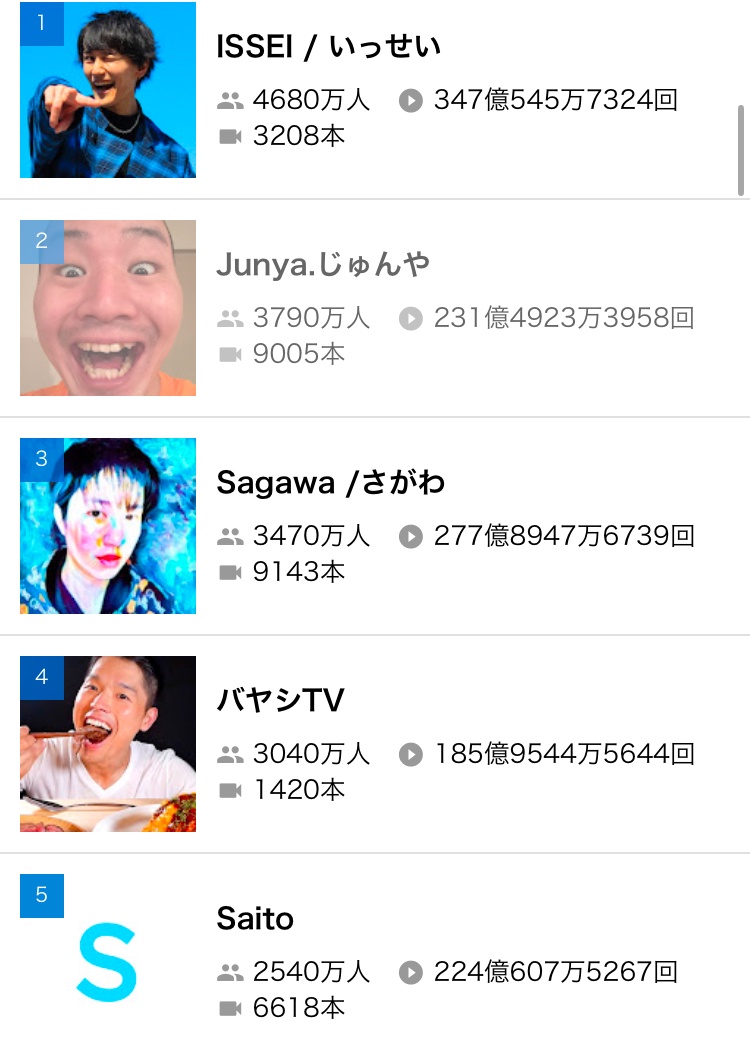 【画像】日本youtuber TOP5wwwwwwwwwwwwwwwwwww