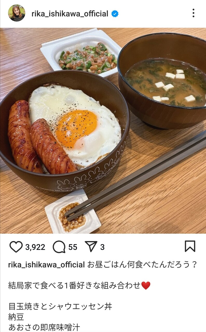 【画像】石川梨華さん(39)の昼御飯はこちら!