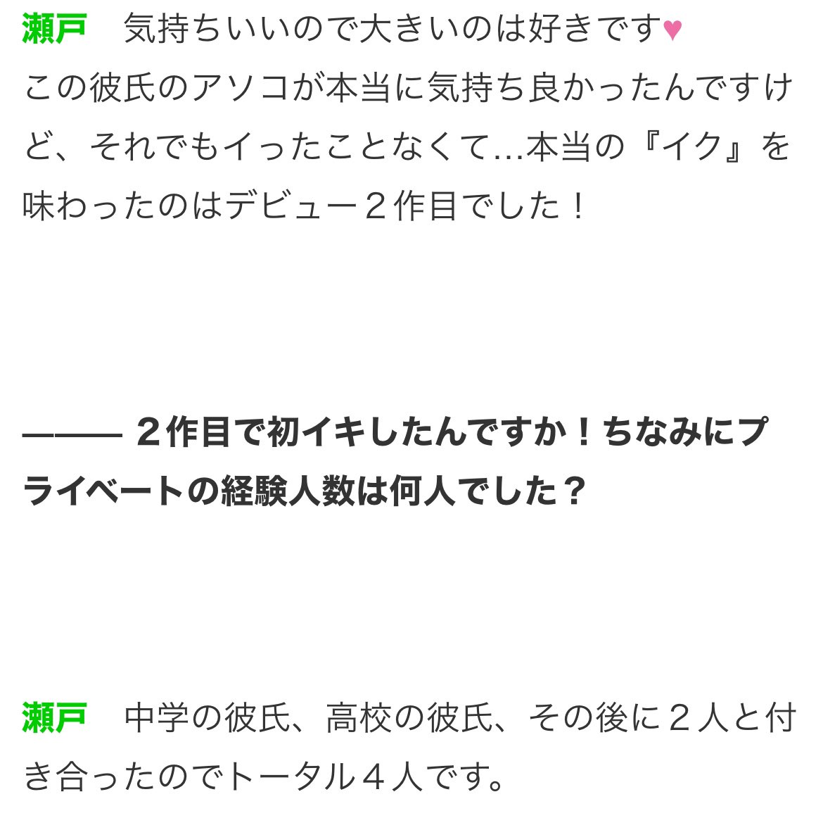 【画像】1000年に1人のセクシー女優・瀬戸環奈「初体験は中学生の時。今まで4人と合体した」
