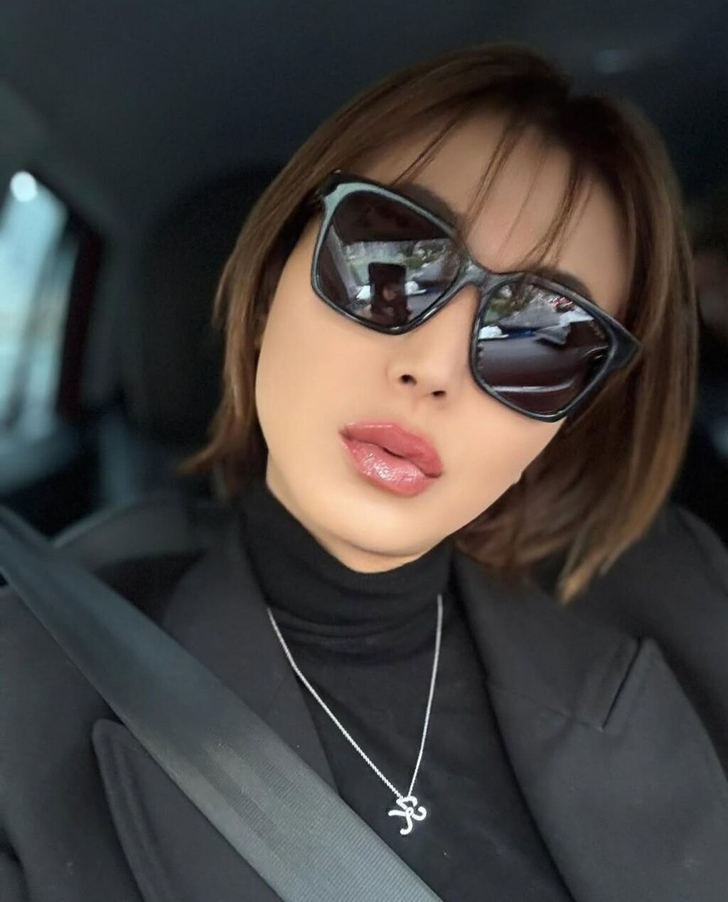 茶髪ボブ、*コーディネートでツヤツヤの唇が際立つ移動中の姿を掲載した。