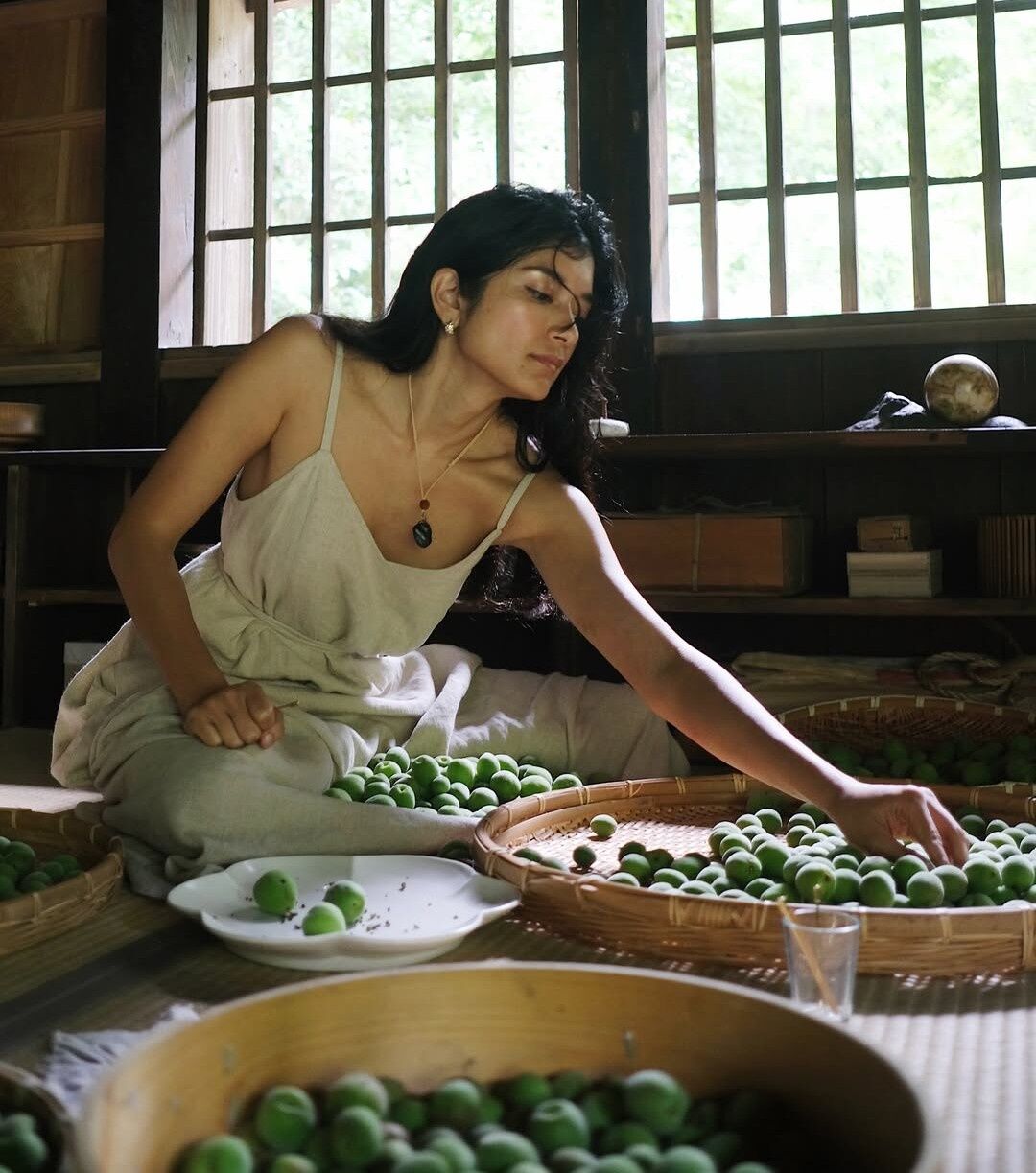 「手作りをすると季節の変化の巡りを感じたり、化学調味料や保存料をいれない無添加の梅を作ることもできるからいい事もいっぱいみたいだよ」と感心しながら、青梅のヘタを取る梅仕事の様子をアップした。