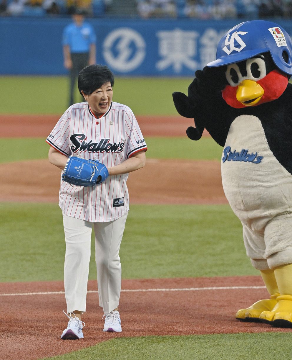 小池氏は6日夜、明治神宮野球場(新宿区)で行われたプロ野球、ヤクルト-阪神戦前の始球式に登場した。「来年はお隣の国立競技場で世界陸上が、そしてデフリンピックが東京体育館で開かれることになっている。これからもスポーツで盛り上げていきましょう」などと呼びかけた後、マウンドから投球。ツーバウンドでキャッチャーに届き、手を振りながら退場した。