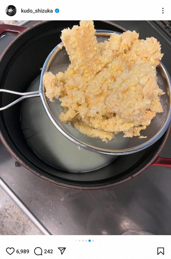 歌手の工藤静香(54)が15日、自身のインスタグラムを更新。とうもろこしを使った料理を披露した。