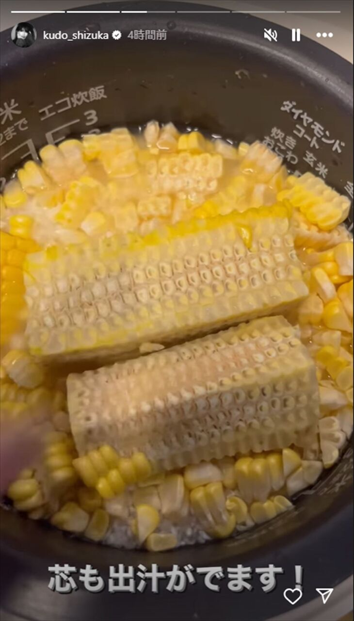 しかし「きっと今回のコーンの芯も何か言われる方はいらっしゃると思うのですが、芯からも出汁が出るのです!」と忠告。「食べ物を最後までいただくのは良い事ですし、いろいろとご意見はあると思いますが、ぜひ楽しくご覧になっていただければと思います」とつづった。
