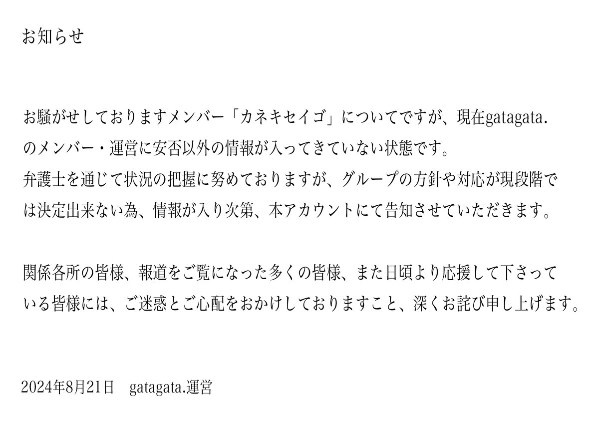 アイドルグループのメンバー・金森誠剛容疑者を逮捕 10代女性にわいせつ行為か 公式Xは「情報が入ってきていない状態」 …な行為をした疑い。 報道によると、金森容疑者はアイドルグループ・gatagata.のメンバーという。同グループの公式Xでは「お騒がせしておりますメン… (出典:オリコン) |