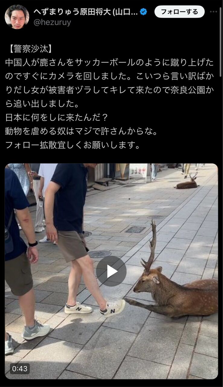 へずまりゅうは色々と鹿にイタズラする外国人見てるし、怒鳴りに行くハードルが下がってるのかもね。