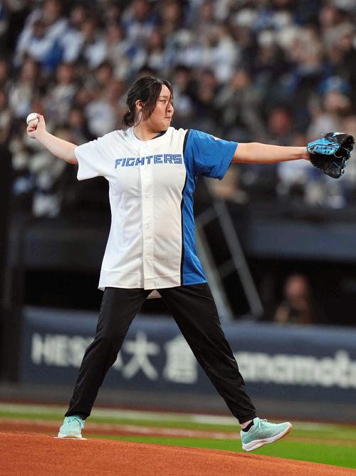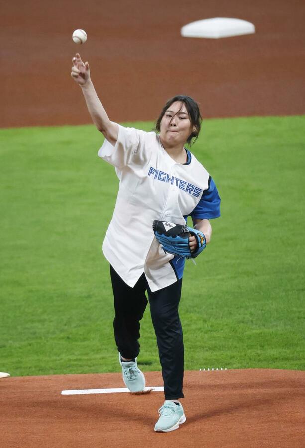 北海道旭川市出身でパリ五輪やり投げ女子金メダリストの北口榛花(26=JAL)が、始球式に登場した。金メダルを取った際の記録65メートル80にちなんで「65・80」の背番号が付いたユニホームをまとって登板。世界のてっぺんを取った“勝利の女神”が、やりをボールに持ち替え、驚きの投球を披露した。