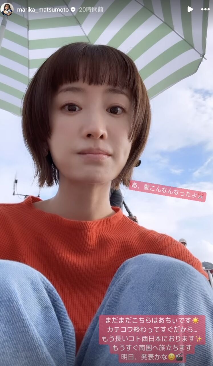 女優の松本まりかが13日、自身のInstagramのストーリーズを更新。新ヘアを披露し話題を集めている。