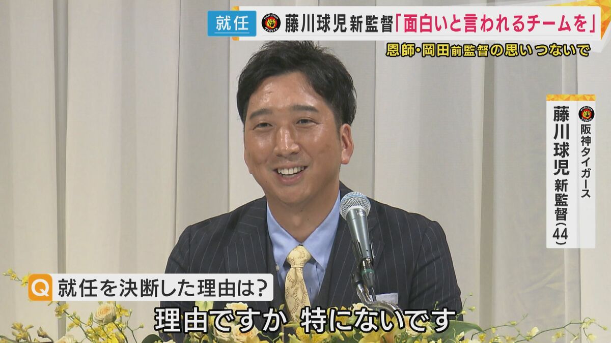 会見で藤川氏は、理想のリーダー像を問われると「岡田監督」と答え、「僕にとっての一番の恩師であり、これからもお世話にならなきゃいけない」と話しました。