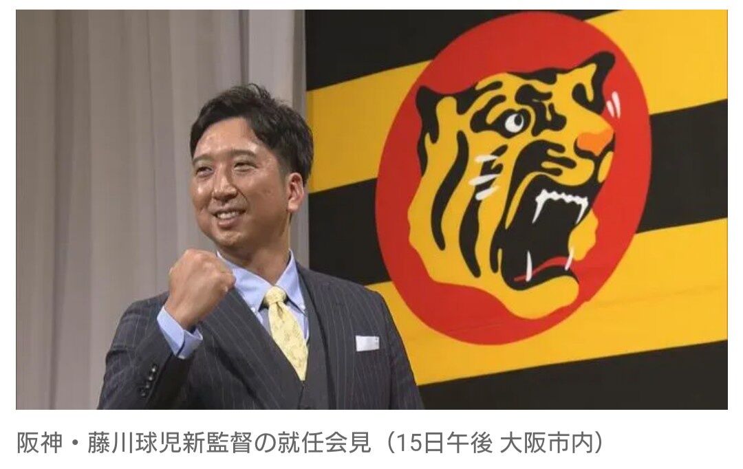 プロ野球・阪神タイガースの次期監督に就任する藤川球児氏(44)が15日午後、大阪市内で会見を開き、「岡田監督が指揮をとった2年、非常に強く、チームも成熟してきた。岡田監督が残した思い、OBの方々が89年間残してきた思いをつながないといけない。ぜひ応援よろしくお願いします」と抱負を語りました。
